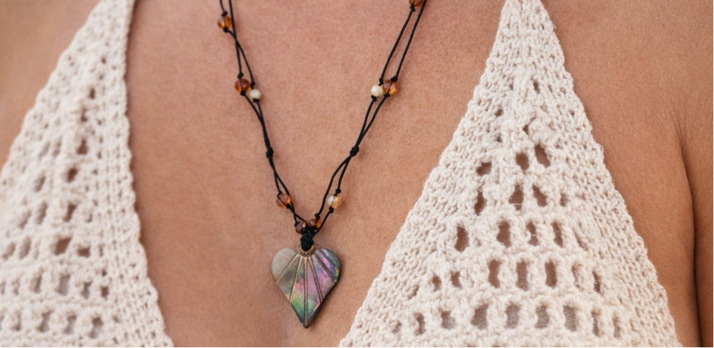 Abalone Shell Heart Jewelry Set - Necklace & Earrings | Beach Ready